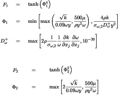 Модель SST k-w устроена так, что она представляет собой композицию двух моделей k-w и k-e, причем использует их сильные стороны. В пристеночной области лучше работает k-w, а вдали от стенки k-e. Это объединение производится при помощи весовой функции F.