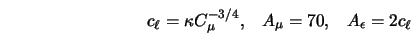 Масштаб турбулентности находят по уравнению приведенному ранее. Константы в уравнениях