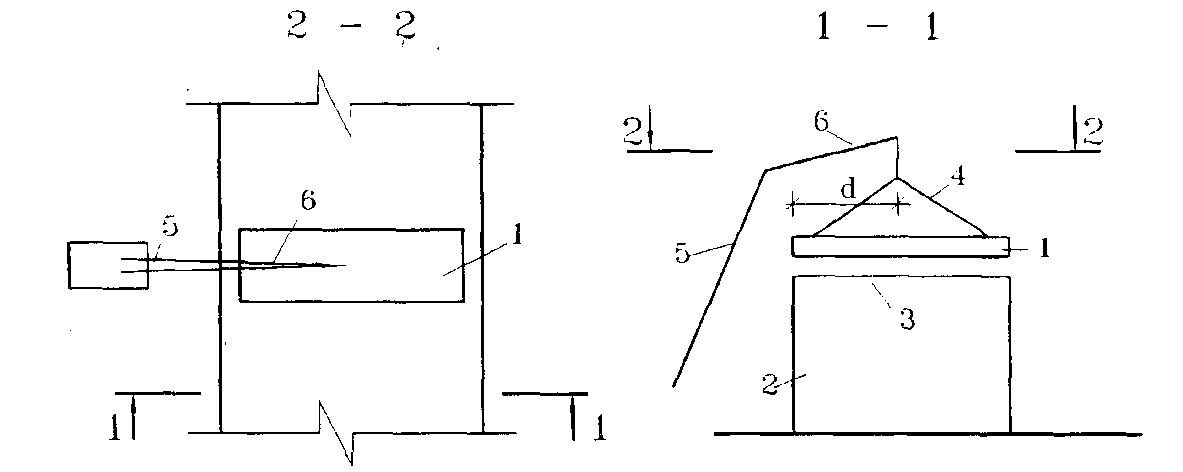 Рис. 3. Технологическая схема монтажа элемента: 1 - монтируемый элемент; 2 - возведенные конструкции; 3 - уровень проектной опоры элемента; 4 - строповочные устройства; 5 - стрела крана; 6 – гусёк. При подборе стрелового крана руководствуются следующим: 1) при строительстве отдельно стоящего здания (или при ведении работ только на одном здании) желательно подбирать гусеничный кран, как наиболее удобный в данном случае в сравнении с пневмоколесным, так как не приходится пользоваться выносными опорами, возможно передвижение крана с грузом и не требуется устройства дорог для крана; 2) подбирают кран в таком порядке: 1 - по грузоподъемности (ориентировочно); 2 - по длине стрелы, и дальше - по соответствию технических параметров требуемым параметрам для каждого монтируемого элемента. Если проектируется монтаж одноэтажного промышленного здания поточным методом, для монтажа зданий можно подобрать несколько кранов для следующих потоков (как вариант): 1) для монтажа колонн; 2) для монтажа подкрановых балок, ферм и плит покрытия; 3) для монтажа ферм (балок) и плит покрытия; 4) для монтажа стеновых панелей.