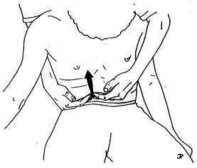 Рис. 46. Прямая манипуляция печени: положение сидя.