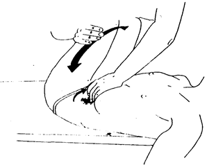 Они состоят в манипуляции ободочной кишки с помощью движений нижних конечностей к туловищу. Пациент находится в положении лежа на спине. Одна рука служит для манипулирования кишки, вторая двигает согнутые ноги к корпусу. Для манипуляции подвздошной тазовой части, например, рука тянет ободочную кишку вверх и влево, реализуя спаривание сил. Можно мобилизовать также слепую кишку, восходящую и нисходящую части, а также подвздошно-тазовую часть ободочной кишки. Это очень хороший маневр, отличающийся эффективностью. Противонаправленные движения нижних конечностей и руки врача повышают эффект вытягивания, особенно, когда колени очень близки к грудной клетке и можно идти глубоко. Мы очень часто используем этот маневр для органов таза.