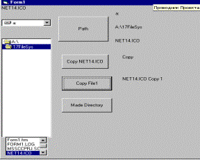Имеется возможность после старта проекта выбрать требуемый объект, например файл каталога некоторого дискового устройства для дальнейшей работы с ним. Рассмотрим кратко некоторые параметры этих элементов управления: · DriveListBox (рис. 3.1 вверху слева). Имена дисковых устройств (свойство Name) в соответствии с соглашением по коду начинаются с drv; важным свойством является Drive, оно доступно только во время выполнения проекта и определяет выбранное пользователем дисковое устройство. Из имеющихся событий представляет интерес Change, происходящее при выборе пользователем нового дискового устройства, · DirListBox (рис. 3.1 в середине слева). При выборе нового дискового устройства в поле элемента управления DirListBox выводится список соответствующих каталогов. Имена каталогов в соответствии с соглашением по коду начинаются с dir. Свойство Path, доступное во время выполнения, задает/возвращает путь к каталогу, выбранному пользователем из списка. Списки обновляются в процедуре события Change, · FileListBox (рис. 3.1 внизу слева). В списках файлов перечисляются файлы текущего каталога, откуда их можно выбрать. Имеется около 50 свойств. Свойство Path доступно только во время выполнения, его можно задать и возвратить. Свойства Hidden, Normal, ReadOnly, System, Archive дают возможность вывести в список только требуемые файлы. Имеется около 20 событий. Часто в процедуре CommandК_Click () выполняются действия, связанные со значениями Path и FileName списка файлов. Чтобы обеспечить совместное функционирование элементов управления DriveListBox, DirListBox и FileListBox после размещения их на форме, нужно создать синхронизирующие их работу процедуры: Private Sub Drive1_Change()Dir1.Path = Drive1.DriveEnd SubPrivate Sub Dir1_Change()File1.Path = Dir1.PathEnd SubДля вывода содержимого каталога после его маркировки и нажатия клавиши Ввод нужно ввести код: Private Sub Dir1_KeyPress(KeyAscii As Integer)If KeyAscii = 13 Then Dir1.Path = Dir1.List(Dir1.ListIndex) End SubЗдесь свойство ListIndex характеризует маркированную пользователем строку, см. ниже. В распоряжение пользователя предоставлен ряд функций, некоторые из них приведены ниже. · ChDrive имя дискового устройства - перейти на другое дисковое устройство, · ChDir путь - перейти в другой каталог, · MkDir путь - создать каталог, · RmDir путь - удалить каталог, · FileCopy источник, цель - копировать файл. · SetAttr - установить атрибуты файла/каталога; допускается комбинация атрибутов. Информация об атрибутах дана в табл. 3.1