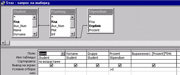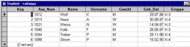 В. DDE Приводится аналогичный пример; создаются 4 таблицы: student, (рис. 6.2 рис. 6.3) stipendija, sessija, prikaz; выполняются 4 запроса (рис. 6.4 рис. 6.5), создается макрос в приложении Word (см. код, данный ниже), открываются 4 канала связи, результаты 4-х запросов по 4-м каналам связи выводятся в файлы dde621 - dde624. Пояснения к коду макроса: · All - вывести все данные из таблиц, включая имена полей, · FildNames, T - вывести список из 2-х строк, содержащий имена полей (первая строка) и их типы данных (вторая строка). Sub dde62() ' макрос в приложении WordDim intChan1 As Integer, intChan2 As Integer, intChan3 As IntegerDim intChan4 As Integer, strResp1 As Variant, strResp2 As VariantDim strResp3 As Variant, strResp4 As VariantintChan1 = DDEInitiate(" MSAccessquot;, quot; A: \nin; TABLE Studentquot;)intChan2 = DDEInitiate(quot; MSAccessquot;, quot; A: \nin; TABLE Stipendiumquot;)