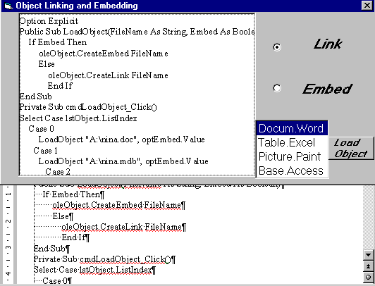 Имеется возможность перетаскивать наборы данных (тексты, рисунки, таблицы, деревья файлов и т.д.) с применением OLE. При этом различают перемещение данных (после перемещения данные в источнике удаляют) и копирование данных. Для обеспечения перетаскивания действия (начало перетаскивания, сбрасывание) должны быть запрограммированы. Рассматриваются два объекта: источник - OLEDrag и приeмник - OLEDrop. В случае автоматического перетаскивания свойствам OLEDragMode, OLEDropMode элементов управления, например,