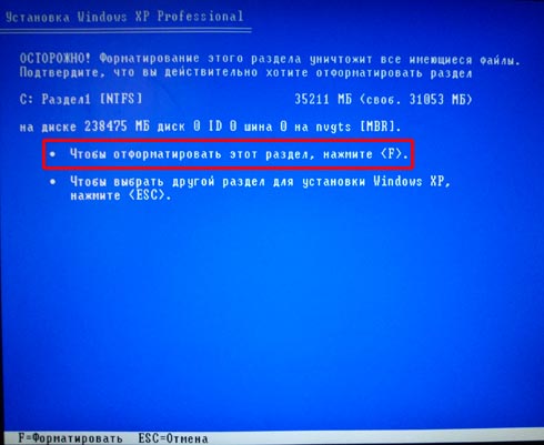 Подтверждаем форматирование диска, нажав английскую клавишу «F».