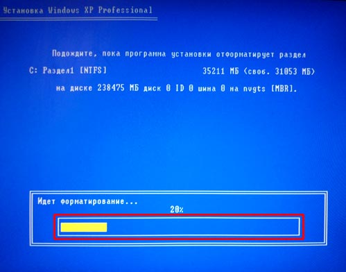 После форматирования, программа установки начнет копировать нужные файлы для установки Windows XP.