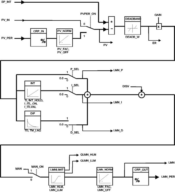 | MANIPULATED VALUE PFCIPHFCY / Manipulated Value Periphery. The manipulated value in peripheral format is available at output " Manipulated Value Periphery" and connected to the controller.