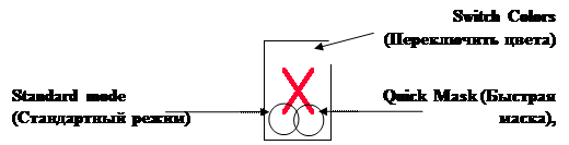 Изображение, накрытое маской, все еще будет видно сквозь нее. Изменить форму маски можно с помощью инструментов Pencil (Карандаш) или Brush (Кисть). Рисуйте по вырезанной области основным черным цветом, чтобы увеличить замаскированную (защищенную) область, или рисуйте на маске белым цветом, чтобы увеличить вырезанную (незамаскированную) область. На панели инструментов можно щелкнуть по кнопке Switch Colors (Переключить цвета), чтобы поменять местами основной и фоновый цвета. Можно также рисовать серым цветом либо с непрозрачностью ниже 100% (устанавливается на панели опций), чтобы создать неполную маску. При редактировании слоя эта область будет затрагиваться лишь частично. Элемент Quick Mask появится на палитре Channels (Каналы) и такая же надпись будет присутствовать в строке заголовка изображения, пока оно находится в этом режиме. На панели инструментов щелкните по кнопке Standard mode (Стандартный режим) или нажмите клавишу Q, когда захотите выключить режим Quick Mask (Быстрая маска). Незамаскированные области преобразуются в выделенную область.