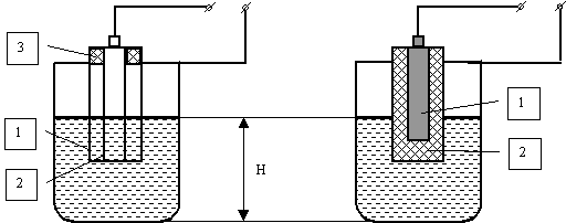 Принцип действия основан на зависимости электрической емкости чувствительного элемента (ЧЭ) первичного измерительного преобразователя от уровня жидкости. Конструктивно ЧЭ выполняются в виде коаксиально расположенных цилиндрических электродов. Их конструкции зависят от физико-химических свойств жидкости: 1) для неэлектропроводящих жидкостей (диэлектриков), имеющих электропроводность менее 10 2) для измерения уровня электропроводящих жидкостей (удельная электропроводность > 10
