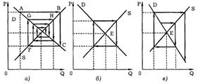 Устойчивое (а) и неустойчивое (в) равновесие в паутинообразной модели и регулярные колебания (б) вокруг него. Способность конкурентных сил предложения и спроса установить цены на уровне, когда решения о продаже и покупке синхронизируются, называется уравновешивающей функцией. Распределительная функция, в отраслях с избыточным спросом фирмы имеют возможность оценивать свои товары выше издержек, необходимых для их производства. Получаемые прибыли стимулируют приток дополнительных ресурсов в отрасль, а убытки отток.