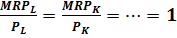 Правило минимизации издержек: предельный продукт на денежную единицу стоимости каждого применяемого ресурса одинаковый: