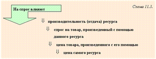 Девиз поведения фирмы в условиях рыночной конкуренции является принцип — производите только то, что сумеете продать, а не пытайтесь продать то, что сумели произвести. Ключевой характеристикой спроса на ресурсы является его производный характер по отношению к спросу на конечную продукцию. Производный спрос на ресурсы — это спрос на ресурсы, зависящий от спроса на конечные продукты, производимые на основе этих ресурсов. Объем спроса на ресурс зависит от следующих факторов: