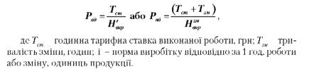 Відрядна розцінка, а відповідно - і відрядна форма оплати праці, може бути індивідуальною і колективною. Якщо встановлено норму часу, то відрядна розцінка визначається за формулою: