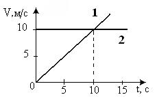 3.1. На рисунке изображены графики зависимости скорости от времени для двух тел, движущихся вдоль одной прямой. Второе тело догонит первое через … секунд.
