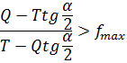 При α =900 S0 = 0, 7(Q + T). При T > > Q і великих кутах α горизонтальна сила Т може подолати вагу візка й виштовхнути колесо доверху, що призведе до сходження візка з рейок. У зв’язку з цим необхідно проводити перевірку на можливість сходження візка з рейок. Умова надійності проти сходження колеса з клиноподібної рейки