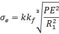 де kf -коефіцієнт, що враховує вплив тангенціальних сил тертя (приймається: при середньому режимі роботи kf =1, 05; при важкому kf =1, 1); h-ширина контактної поверхні; Е -приведений модуль пружності, E = 2E1E2 /(E1 + E2); Е1, Е2 –модулі пружності матеріала обода колеса та головки рейки; k -коефіцієнт, який залежить від співвідношення R2/R1< 1, де R1 – більший, а R2-менший з радіусів r1 або r2; Р-максимальне навантаження на ободі ходового колеса. Максимальне навантаження на ходове колесо визначається за формулою