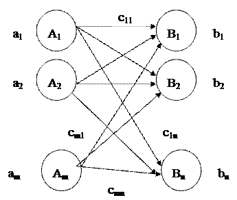 В настоящее время задачи транспортного типа или задача прикрепления поставщиков к потребителям стала типовой для промышленных предприятий, имеющих в своем составе несколько фирм, складов, оптовых баз и рынков сбыта. Эти задачи применяются для выбора оптимальных маршрутов доставки продукции от поставщиков к потребителям. 1.1 Постановка задачи. Имеются пункты производства
