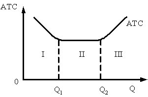 I этап: Положительный эффект от масштаба Увеличение объема выпуска сопровождается снижением LATC, что объясняется эффектом экономии (например, за счет углубления специализации труда, применения новых технологий, эффективное использование отходов). II этап: постоянная отдача от масштаба При изменении объема издержки остаются неизменными, то есть рост количества применяемых ресурсов на 10% вызвал рост объемов производства также на 10%. III этап: