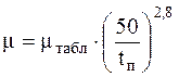 где μ табл – динамическая вязкость при tп = 50˚ С, Н·с/м2 .