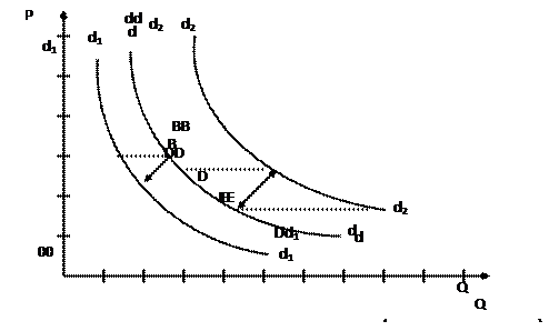 Рис. 2.3. Кривые изменения величины спроса под воздействием неценовых факторов