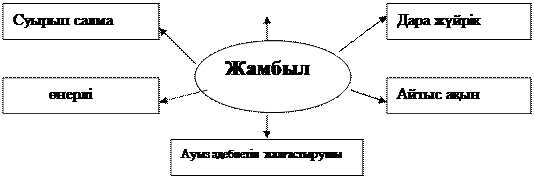 (1846-1945) Сабақ тың мақ саты: а) оқ ушыларғ а жү з жасағ ан алып ақ ын Жамбалдың ө мірінен мә лімет бере отырып, оқ ушылардың сабақ қ а деген қ ызығ ушылығ ын арттыру жә не негізгі мә селелерге аса кө ң іл бө луге ү йрету; ә) оқ ушыларды адамгершілікке, имандылық қ а, асыл қ асиеттерге тә рбиелеу; б) Сабақ барысында оқ ушыларды ө з ойын айта білуге, мә нерлеп оқ уғ а дағ дыландыру; Сабақ тың тү рі: жаң а сабақ Сабақ тың ә дісі: сұ рақ -жауап, талдау, іздену т.б Сабақ тың кө рнекілігі: сызбалары, кестелері, портреті т.б Пә наралық байланыс: тарих Сабақ тың барысы: а) Ұ йымдастыру кезең і: Оқ ушылармен амандасу, тү гелдеу, оқ у қ ұ ралдарын тексеру, сыныптың тазалығ ына кө ң іл бө лу. Оқ ушылардың зейінін сабақ қ а аудару. ә) Ү й тапсырмасын пысық тау: Ү йге берілген тапсырманы сұ раймын.Оқ ушыларғ а бірнеше сұ рақ тар қ оямын. 1. Ж.Аймауытұ лының қ андай шығ армасын білесің дер? 2. «Ә нші» ә ң гімесінде қ аланың кедей жатақ тарының кә сібі мен тұ рмысы қ алай суреттеледі.? 3. Ә ншінің салғ ан ә ні мен тың даушылардың алғ ан ә сері, сезім-кү йлері қ алай беріледі? 4. Ә ншінің автор баяндайтын тағ ы қ андай мінез-қ ылығ ы бар? б) Жаң а сабақ ты тү сіндіру: