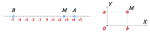 Но комплексные числа можно изображать на числовой плоскости. Для этого мы выбираем на плоскости прямоугольную систему координат, с одинаковым масштабом на обеих осях. Комплексное число a + b·i изображается точкой M, у которой абсцисса x равна абсциссе a комплексного числа, а ордината y равна ординате b комплексного числа.