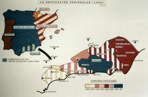 3.1. Unió n territorial La primera intenció n de los reyes Cató licos fue lograr la unidad territorial de la Pení nsula. Con su matrimonio se uní an Castilla y Aragó n, pero quedaban por incorporar: Portugal, Navarra y Granada. Se trató de incorporar Portugal por medio de la polí tica matrimonial y para ello casaron a su hija Marí a con el rey de Portugal, pero la muerte prematura de é sta impidió realizar el plan (eso sí, esta polí tica matrimonial dará sus frutos mas tarde, durante el reinado de Felipe II). Navarra era un territorio controlado por Francia. El reino se encontraba en guerra interna y dividido en dos facciones: los partidarios de unirse con Castilla y los pro-franceses. Fernando, el Cató lico, aprovechó esta situació n y llevo a su ejercito en apoyo de los independentistas navarros. Con esta presió n interna junto a la victoria del ejé rcito españ ol sobre el francé s en Milá n se lograba la incorporació n de Navarra para Españ a en 1512. Aunque este territorio tambié n conservo sus costumbres y leyes. La incorporació n de Granada fue el hecho má s importante. Era el ú ltimo reino musulmá n en Españ a y su conquista fue complicada. Hubo una dura guerra de casi diez añ os. En 1487 se conquista Malaga y en 1488, Baza. La incorporació n de estos territorios permitió que, desde la nueva ciudad de Santa Fe, se iniciara un largo asedio, hasta que en 1492 el rey de Granada, Boabdil El Chico firmó las capitulaciones para entregar la ciudad a los Reyes Cató licos. Se respetó la vida de la població n, y al principio su lengua, sus costumbres y leyes. Pero la convivencia duró poco y en la prá ctica nunca existió. En 1501 se firmó el primer decreto que prohibí a la prá ctica del Islam y obligaba a los musulmanes del reino (llamados Mudé jares) a convertirse al cristianismo o exiliarse; la mayorí a optó por la conversió n aparente (en privado seguí an con sus ritos y fe islá mica).