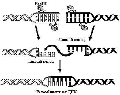 Рис. 5. Применение эндонуклеазы рестрикции EcoRI для создания рекомбинантной ДНК
