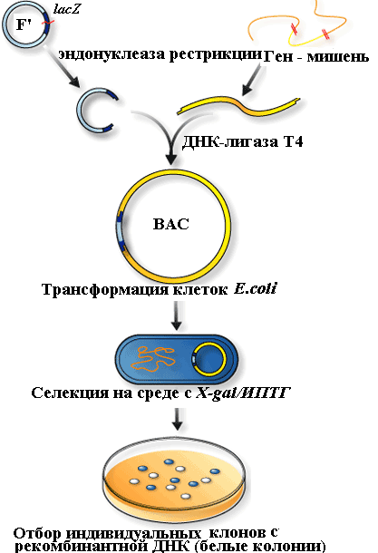 Рис. 27. Клонирование фрагментов ДНК большого размера с помощью ВАС.