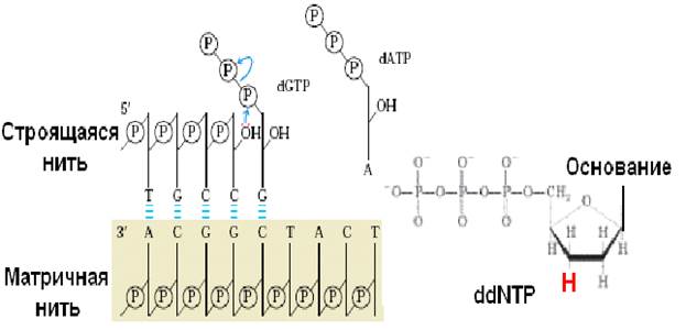 Рис. 36. Остановка синтеза полинуклеотидной цепи с помощью ddNTP