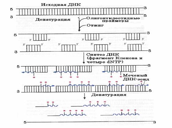 Рис. 51. Схема получения меченых ДНК-зондов с помощью метода “случайных праймеров”