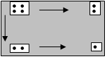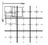 де Визначення площі та периметра. Для визначення площі кожного кольору та довжин периметрів фігур, які формуються конкретними кольорами, розроблена процедура сканування зображення квадратом 2х2 пікселя (рис. 2). В кожному рядку квадрат пересувається з кроком в один піксель вправо. При досягненні правою границею квадрата правої границі зображення формується скандувальна фігура у виді прямокутника розміром в два пікселя: 2х1. Таким чином, рядок на n пікселів сканується n-1 квадратами і одним прямокутником. Таке сканування здійснюється m-1 разів (m – кількість рядків зображення). В m-ому рядку сканування здійснюється прямокутником розміром 1х2. На рис2а проілюстровано процес сканування, а на рис.2б перетворення областей сканування для кінцевих стовпця, рядка і пікселя.